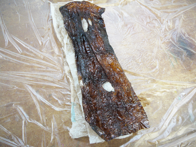 その後、テレピン油をガラス板(もしくは器)にかけ、ヘラやスプーン等でこすり落とし、ウエスで吸い取ります。